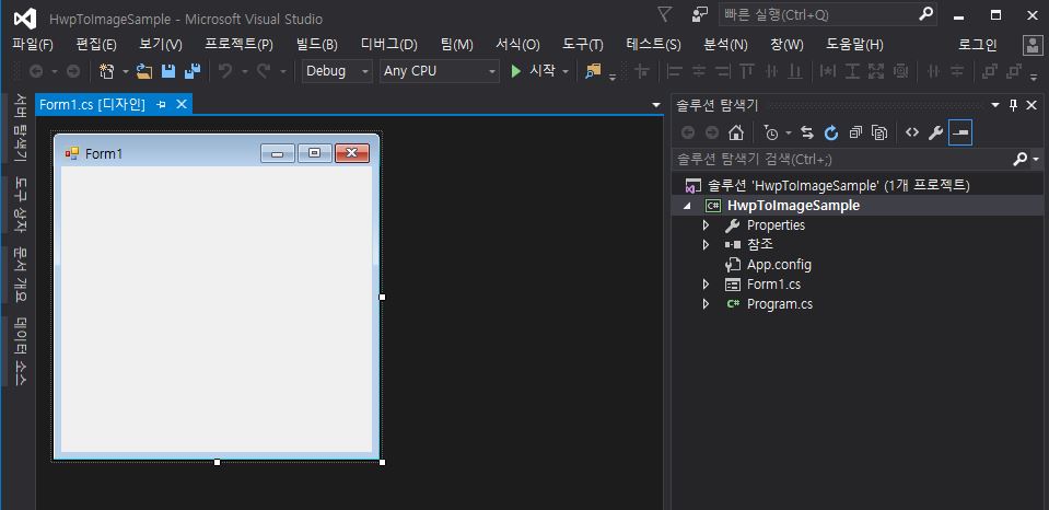 이제 WinForm의 윈도우에 클릭 or 드래그를 하면 'HwpCtrl Control'이 추가됩니다.